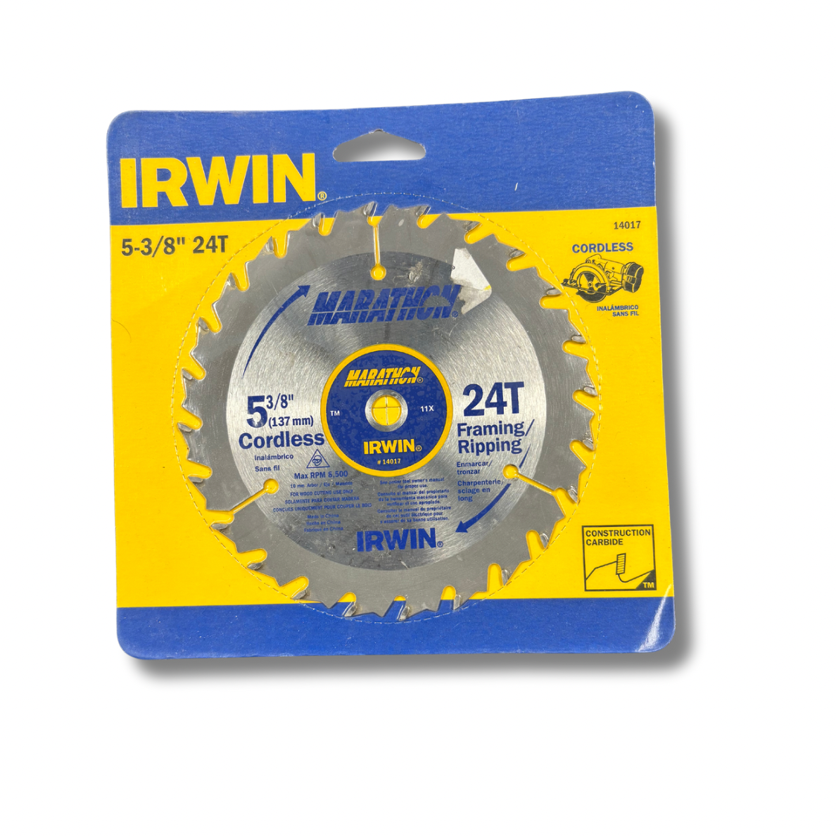 The Irwin Marathon 14017 5-3/8" 24T Marathon Cordless Circular Saw Blade is a professional-grade, high-performance blade designed for precision cutting. With its 24 teeth and durable construction, this blade provides a smooth and efficient cutting experience that is perfect for any cordless circular saw. Upgrade your cutting game with the Irwin Marathon blade.