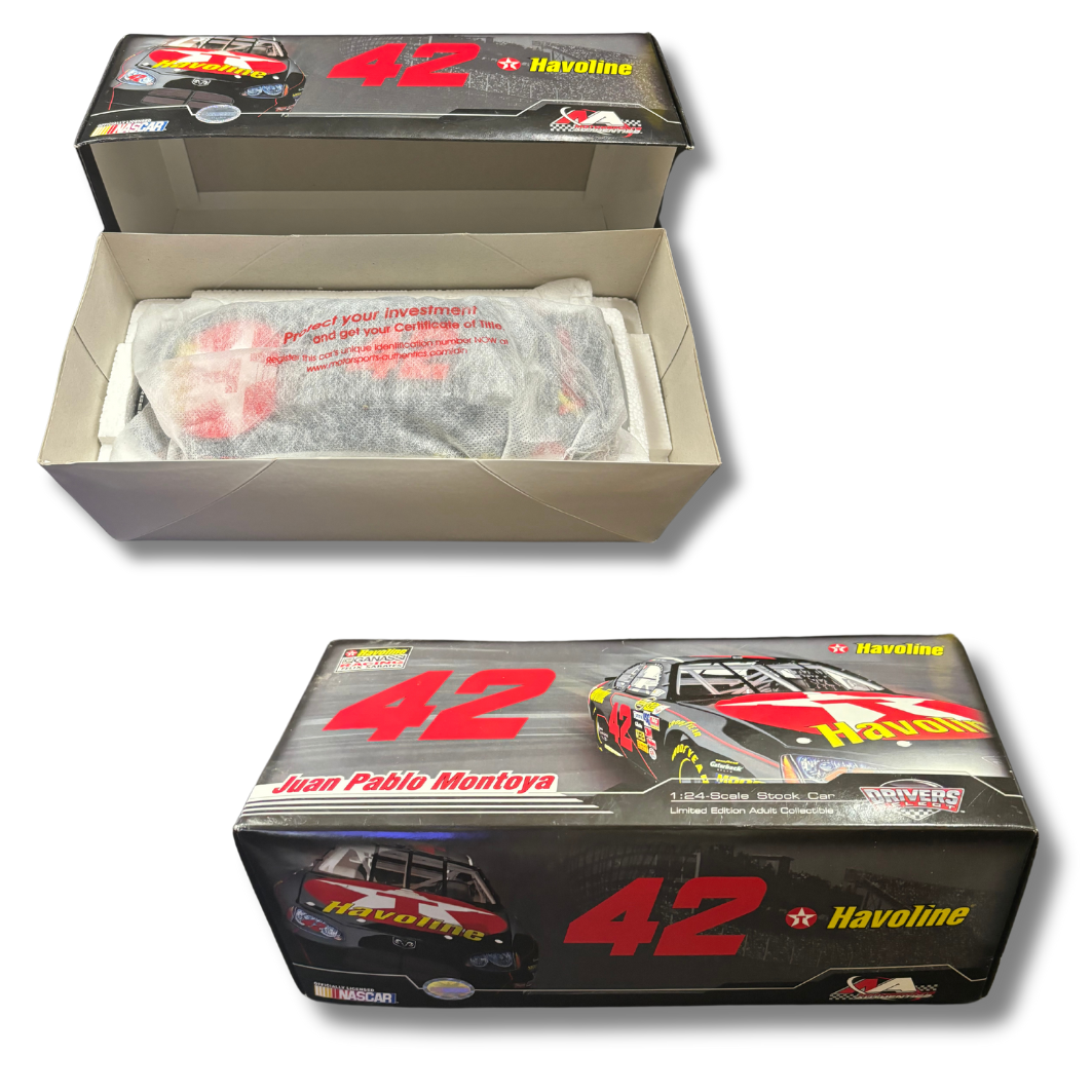 Rev up your collection with the Juan Pablo Montoya #42 Havoline 1/24 Scale 2007 Drivers Select NASCAR model car. This sleek replica is perfect for racing fans and collectors alike. Get your hands on the iconic #42 car and show off your love for NASCAR. (Vroom vroom!)