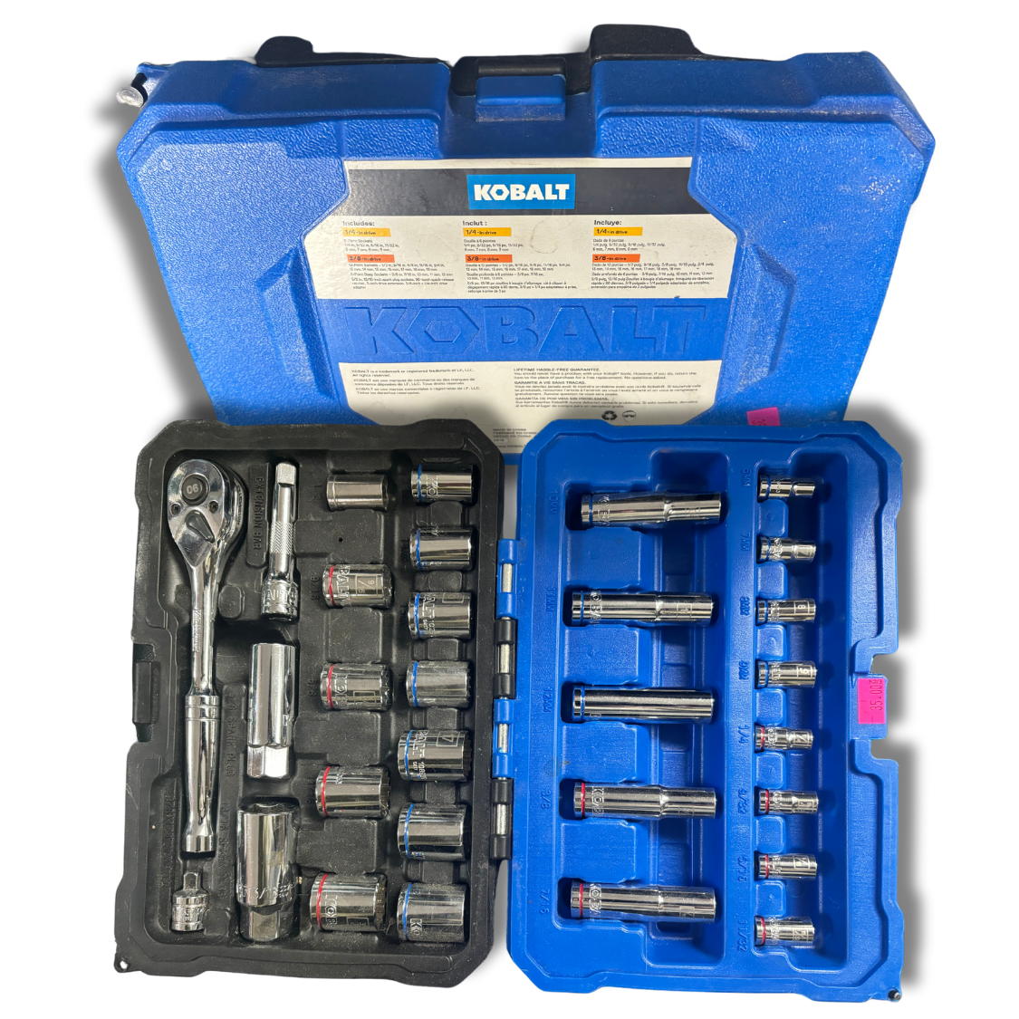 Efficiently tackle any task with the Kobalt 30-Piece Standard and Metric Tool Set. With a polished chrome finish for durability, this set includes both SAE and metric measurements for versatile use. Keep it all organized in the sturdy hard case for easy access and portability.