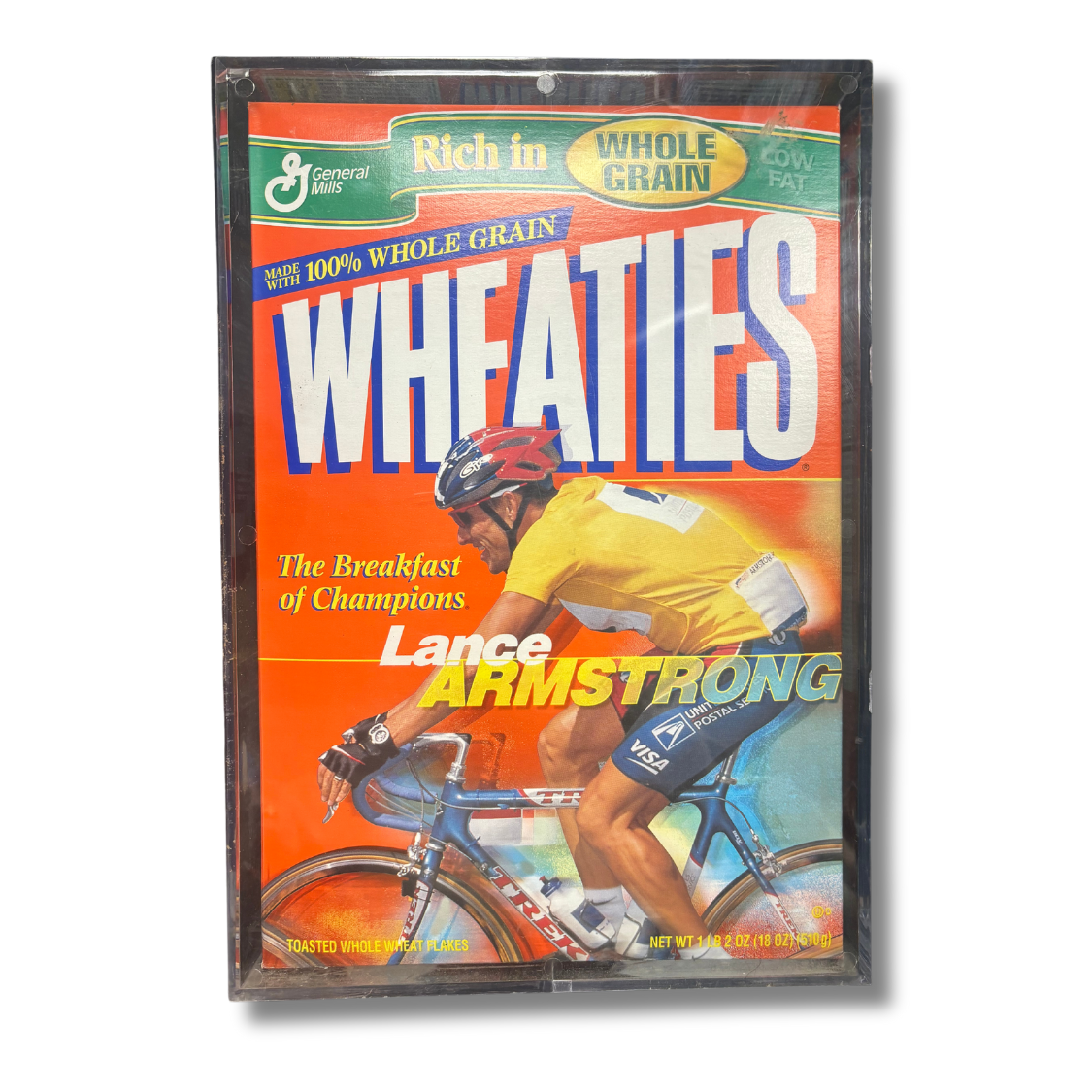 Get your hands on this legendary Lance Armstrong Wheaties cereal, now sealed in a crystal clear box for ultimate preservation. A must-have for any true fan with a taste for champions. Limited stock available, grab yours before it's gone!